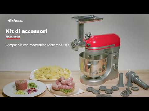 Комплект аксесоари за Планетарен миксер MODERNA: месомелачка, приставки за пълнене на колбаси и приставки за прясна паста. Приготвяйте тартари, бургери, малки и големи колбаси, кюфтета и прясна паста всеки ден директно вкъщи!